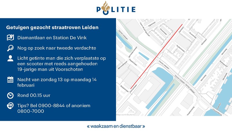 Bron: https://www.politie.nl/nieuws/2022/februari/14/06-getuigen-gezocht-van-straatroven-in-leiden.html
