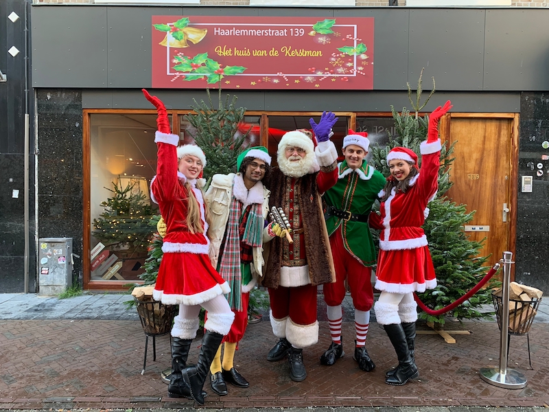 De Kerstman is niet alleen, hij heeft twee elfen meegenomen en er zijn Kerstmeisjes die op de Haarlemmerstraat snoep uitdelen. In het huis kunnen kinderen warme chocolademelk drinken, op de foto met de Kerstman en een verlanglijstje maken.