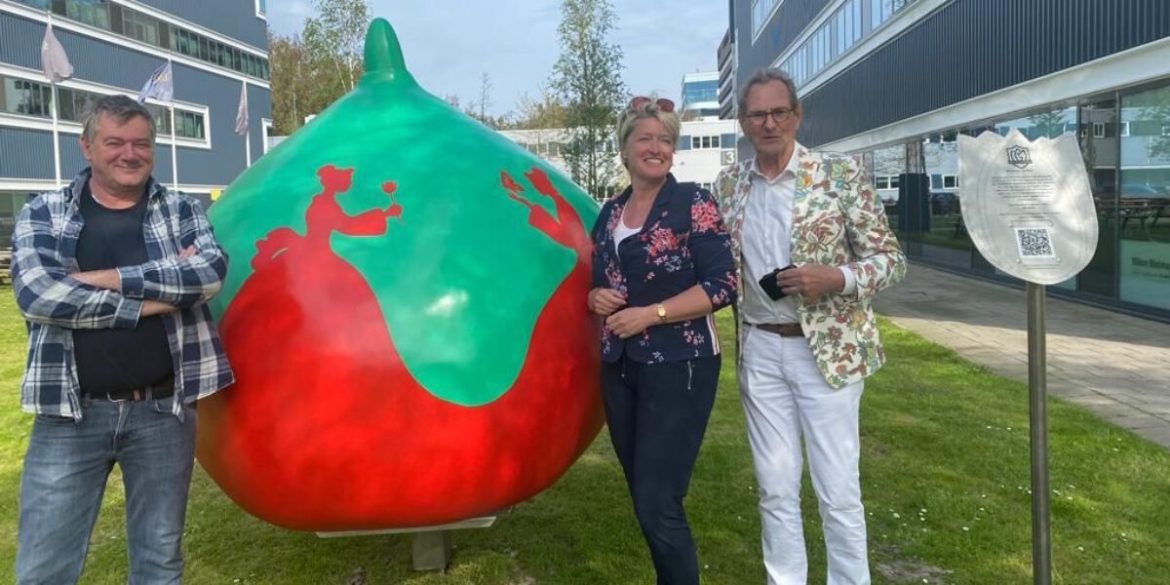 De zoektocht naar een plek voor een Reuzenbol in Leiden is met succes afgerond. In het Leiden Bio Science Park heeft de groenrode bol ‘De Muze‘ van kunstenaar Rik Smits eerder deze maand een plekje gekregen bij het gebouw Biopartner1.