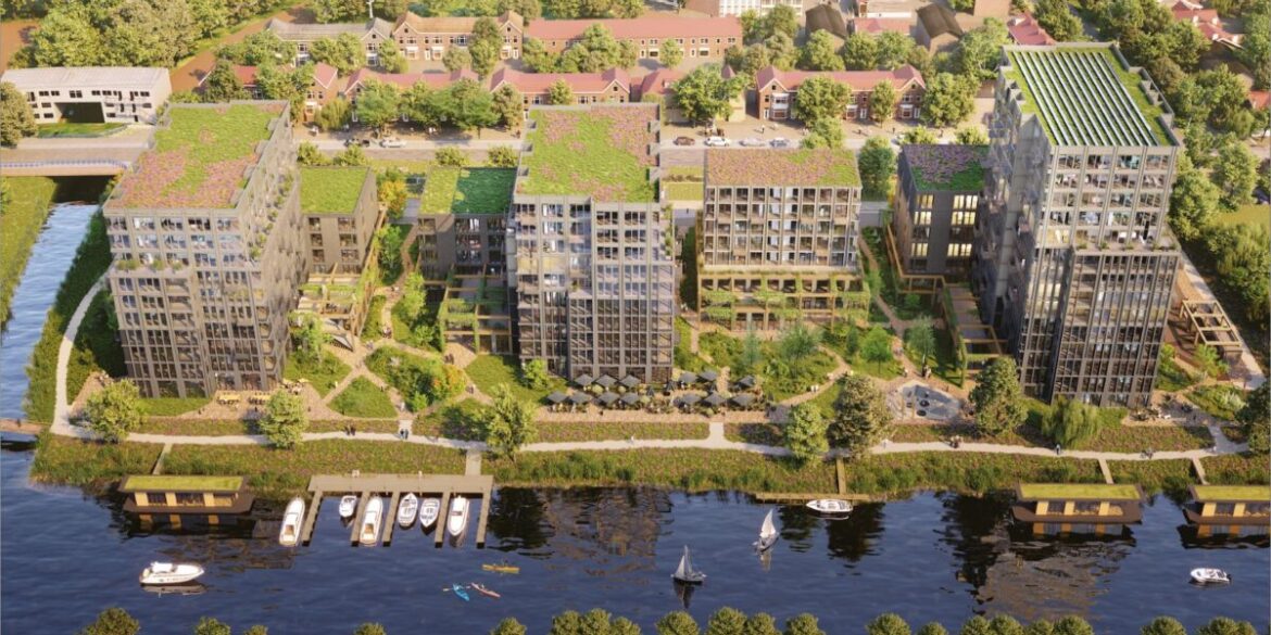 Ook Terpstra is blij dat er nu eindelijk zicht is op realisatie van het bouwplan. “We werken hier al sinds 2019 aan en de woningen zijn keihard nodig. Bovendien heb ik nooit eerder een bouwplan gezien waarbij zoveel groen werd toegevoegd.” Dat groen komt vooral langs het water. Als de bestaande gebouwen zijn gesloopt, wordt de nieuwbouw verder van de kade gerealiseerd. Daardoor ontstaat een openbaar toegankelijke promenade langs het water.