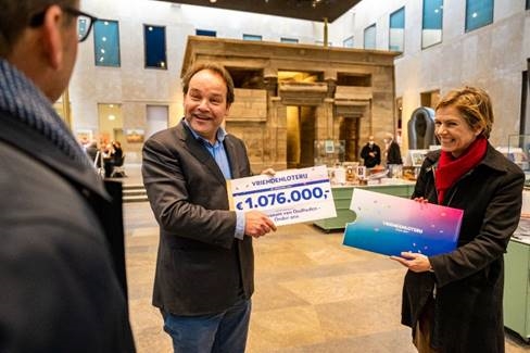 LEIDEN – Het Rijksmuseum van Oudheden (RMO) in Leiden heeft van Dorine Manson en Jeroen Branderhorst van de VriendenLoterij een cheque ontvangen van 1.076.00 euro. Dit bedrag hebben zij gekregen in het kader van het project ’Onder Ons’, waarbij het RMO samen met andere Nederlandse musea een tentoonstelling gaat maken. Bij deze tentoonstelling komen exposities met archeologische voorwerpen uit eigen regio en thema-exposities. Van deze exposities komen in de periode van 2023 en 2027 in eerste instantie 15 tentoonstellingen. Ook komen er vijf feestelijke evenementen en tentoonstellingen rond de vijf absolute topstukken van de Nederlandse archeologie.
