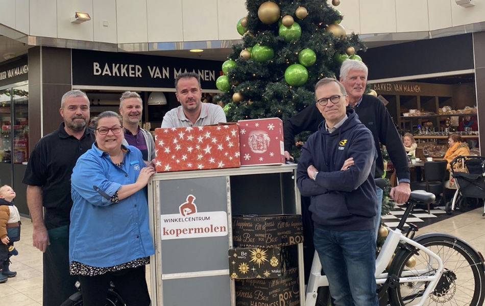 ‘Het pakket zit echt bomvol.’, zegt Gerard Neuteboom, die zich als oud winkelier over de actie heeft ontfermd. Van puzzelboekje tot chocoladetruffels, kaasplank tot banketstaaf en van vruchtensap tot glühwein. Meerdere winkeliers stellen een waardebon beschikbaar. De pakketten worden verspreid via de sociale partijen in de wijk (o.a. Incluzio, Buzz, de Regenboog en via de wijkvereniging). ‘Zij weten waar zo’n kerstpakket het best tot zijn recht komt.’, aldus kerstmarkt-organisator Jeroen Bakker van Pop-in de Kopermolen een initiatief van Van der Vorm Vastgoed, eigenaar van het winkelcentrum.