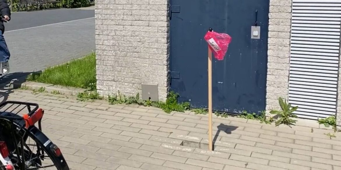 Een deel van het Van Steenis gebouw van de Universiteit Leiden aan de Einsteinweg werd vorige week afgezet wegens een zinkgat. Ook deze week blijkt er bij de fietsenstalling een tegel verdwenen in een zinkgat. Dit gat is afgezet met een stok en een roze plastic zak. In januari dit jaar was op precies dezelfde plek ook al een verzakking.