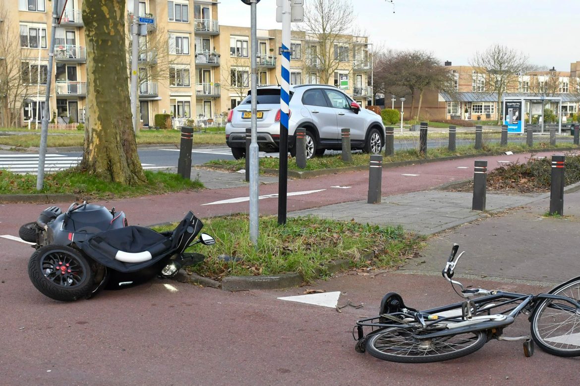 LEIDERDORP – Er heeft vanmorgen rond 9:30 uur een aanrijding tussen scooter en fietser plaatsgevonden op de Splinterlaan, nabij de Spanjaardsbrug in Leiderdorp. De bestuurder van de scooter en de fietter zijn beide behandeld door het ambulancepersoneel. Zij konden ter plaatse worden behandeld, niemand hoefde naar het ziekenhuis.