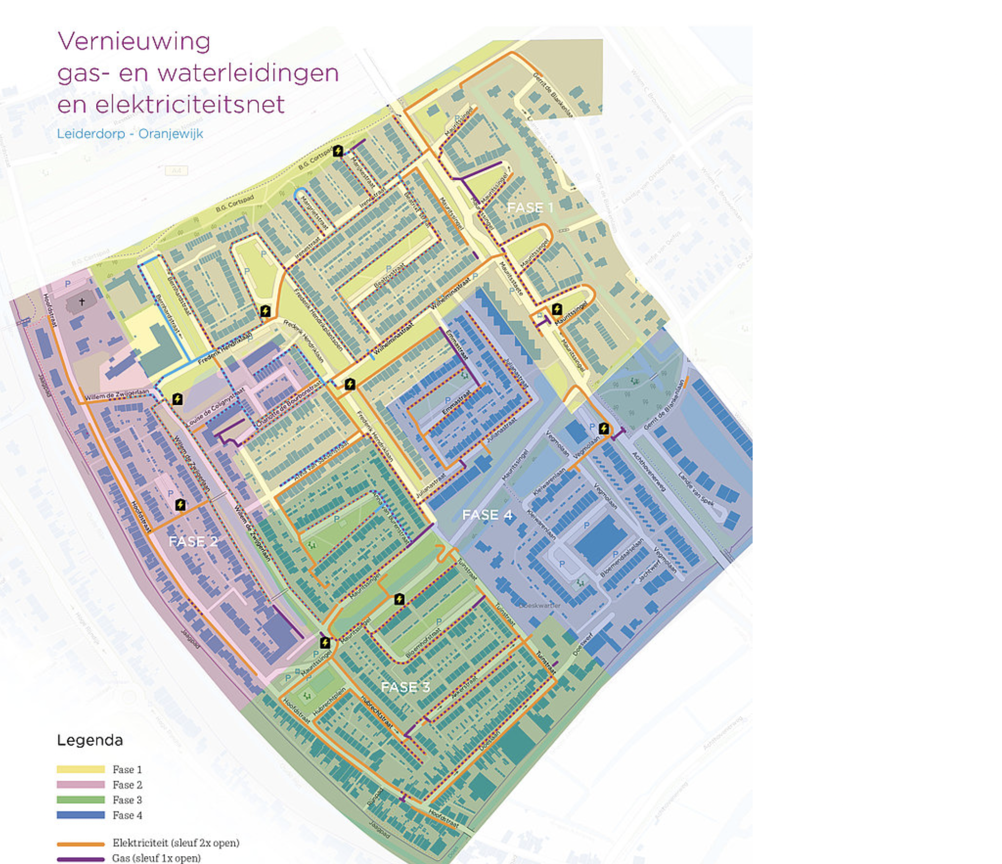 LEIDERDORP – Netbeheerder Liander en drinkwaterbedrijf Oasen zijn op 20 maart gestart met een grootschalig project om het stroomnet te verzwaren en om de broze gas- en waterleidingen in de Oranjewijk in Leiderdorp te vernieuwen. De werkzaamheden worden gecombineerd uitgevoerd om de overlast voor de buurt zoveel mogelijk te beperken.