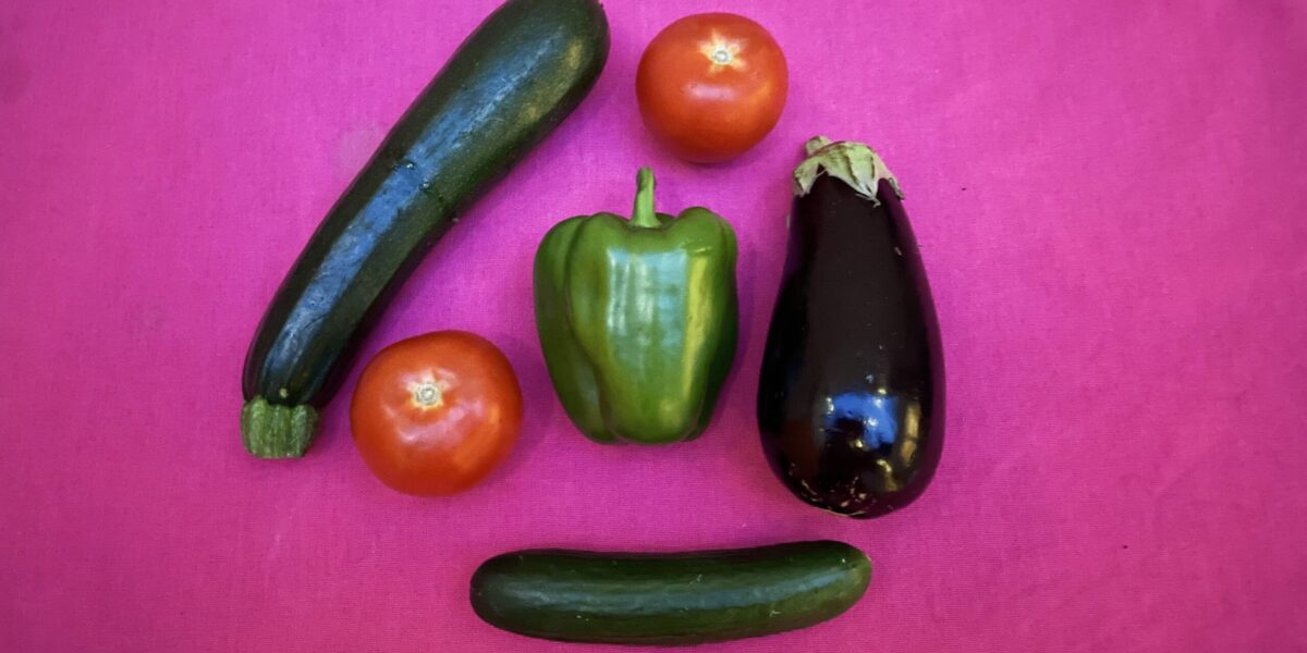 Was de groenten en snijd alles in kleine stukjes. Let erop dat je de hardere groenten eerst in de pan doet (courgette, aubergine, paprika). Als de courgette en aubergine zachter beginnen te worden doe je de komkommer en tomaten in de pan.