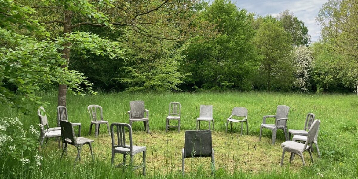 “Het werk is heel uiteenlopend”, vertellen Stephanie Lutz en Jos Gerrese van de stichting Kunst in de Heemtuin in Cultuur071. “Van kleine werkjes die hoog in de boom hangen tot een grote kring van betonnen stoelen die uitnodigt om de dialoog aan te gaan en je perspectief door een gesprek met een ander te veranderen.”