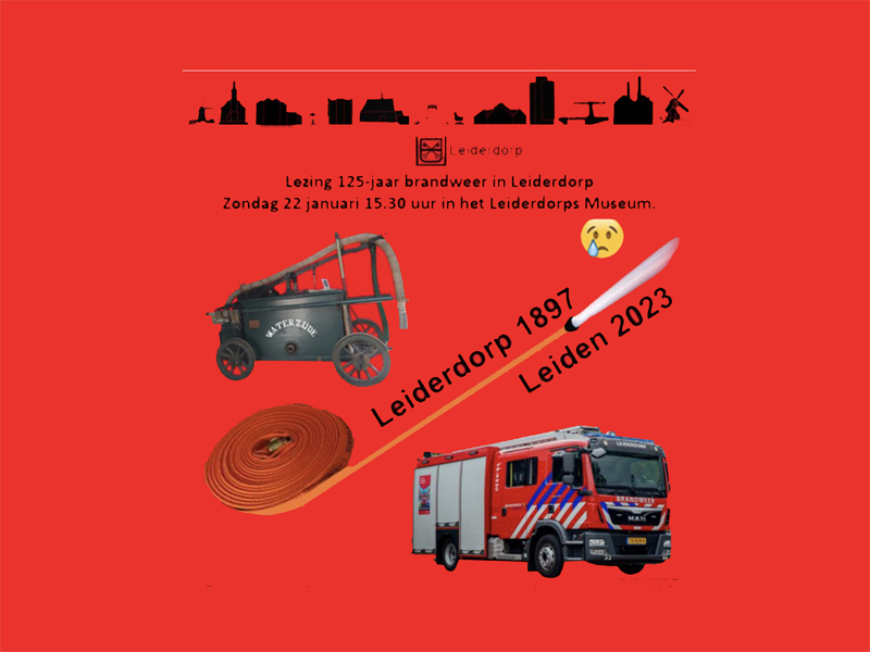 De lezing over deze 125 jaar vindt plaats op zondagmiddag 22 januari om 15.30 uur. Je kunt je opgeven door een mailtje te sturen naar info@leiderdorpsmuseum.nl met de vermelding ‘125-jaar brandweer’. Er is plaats voor 35 belangstellenden.