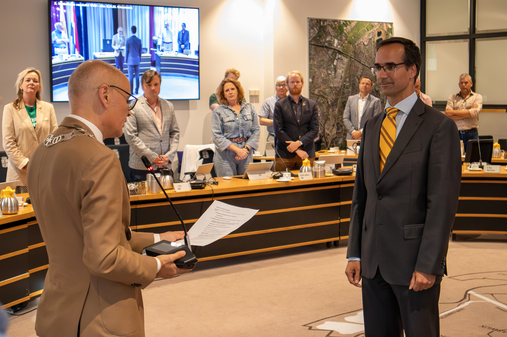 Edgard Creemers (rechts) is bij het begin van de gemeenteraad geïnstalleerd. (Foto: Maxime Kok)