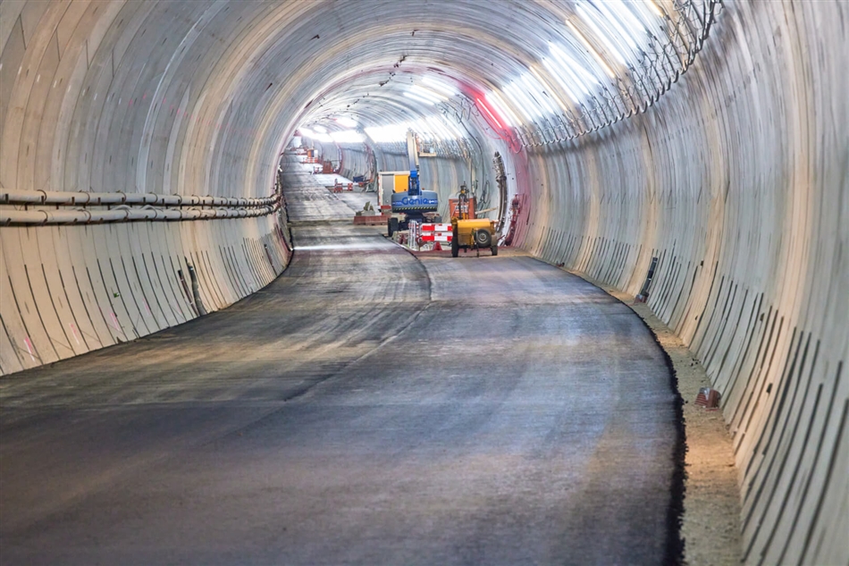 LEIDEN – Zo’n 7000 ton asfalt was nodig voor het wegdek van de 434. Vlak voor Kerstmis is ook de zuidelijke tunnelbuis voorzien van een eerste laag asfalt. Asfalteren in een tunnel vergt extra maatwerk volgens ontwikkel Comol5. Er moet rekening gehouden worden met de machines die worden gebruikt en de beperkte ruimte die er is door de ronde tunnelwanden.