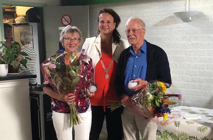 VOORSCHOTEN – Burgemeester Nadine Stemerdink reikte zaterdagmiddag de “Parel van Voorschoten” uit aan Fia Oudshoorn en Cees Westhoek. Deze uitreiking vond plaats in buurthuis De Boschbloem waar beiden al jaren actief zijn als vrijwilliger.