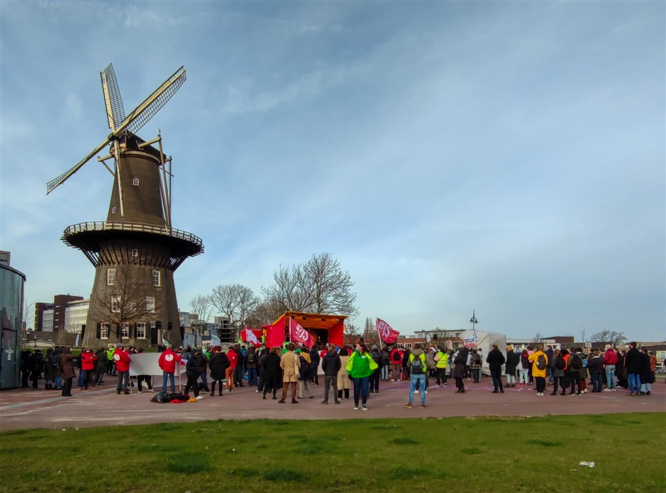 Eerder vandaag was er een woondemonstratie op de Lammermarkt bij Molen de Valk. Tijdens de demonstratie waren er speeches van ervaringsdeskundigen en er was muziek. Daarna volgde een protestmars door de binnenstad.